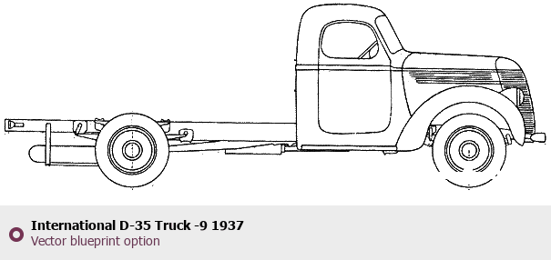 Raster blueprint of the 1937 International D-35 Truck -9 Heavy Truck. This free downloadable image can be used for graphic projects, digital design, and 3D modeling. The file provides accurate exterior proportions of the vehicle. Model year: 1937. Body type: Heavy Truck.