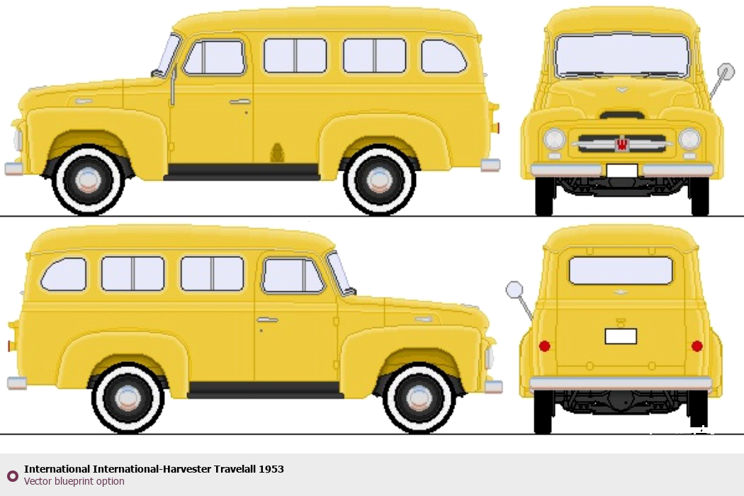 Raster blueprint of the 1953 International Harvester Travelall Heavy Truck. This free downloadable image can be used for graphic projects, digital design, and 3D modeling. The file provides accurate exterior proportions of the vehicle. Model year: 1953. Body type: Heavy Truck.