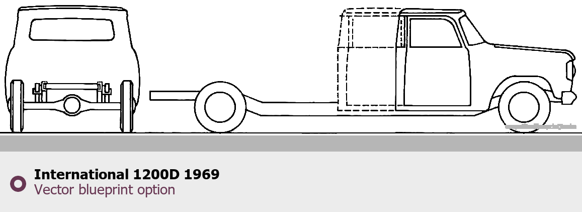 Raster blueprint of the 1969 International 1200D Heavy Truck. This free downloadable image can be used for graphic projects, digital design, and 3D modeling. The file provides accurate exterior proportions of the vehicle. Model year: 1969. Body type: Heavy Truck.
