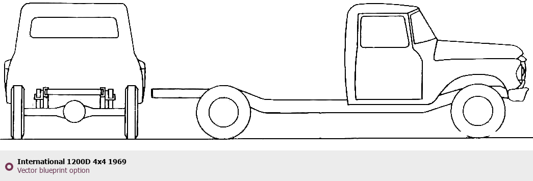 Raster blueprint of the 1969 International 1200D 4x4 Heavy Truck. This free downloadable image can be used for graphic projects, digital design, and 3D modeling. The file provides accurate exterior proportions of the vehicle. Model year: 1969. Body type: Heavy Truck.
