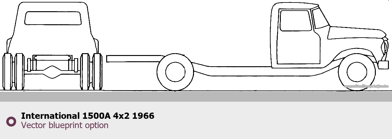 Raster blueprint of the 1966 International 1500A 4x2 Heavy Truck. This free downloadable image can be used for graphic projects, digital design, and 3D modeling. The file provides accurate exterior proportions of the vehicle. Model year: 1966. Body type: Heavy Truck.