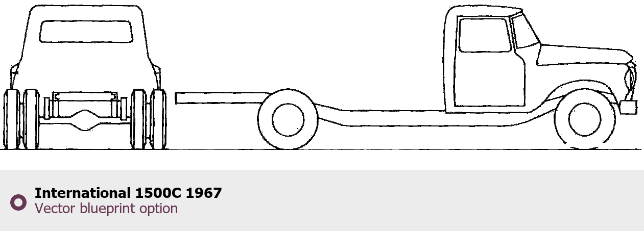 Raster blueprint of the 1967 International 1500C Heavy Truck. This free downloadable image can be used for graphic projects, digital design, and 3D modeling. The file provides accurate exterior proportions of the vehicle. Model year: 1967. Body type: Heavy Truck.