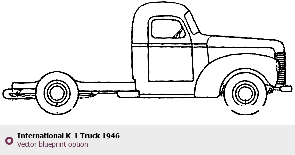 Raster blueprint of the 1946 International K-1 Truck Heavy Truck. This free downloadable image can be used for graphic projects, digital design, and 3D modeling. The file provides accurate exterior proportions of the vehicle. Model year: 1946. Body type: Heavy Truck.