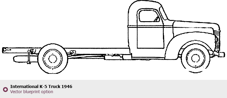 Raster blueprint of the 1946 International K-5 Truck Heavy Truck. This free downloadable image can be used for graphic projects, digital design, and 3D modeling. The file provides accurate exterior proportions of the vehicle. Model year: 1946. Body type: Heavy Truck.