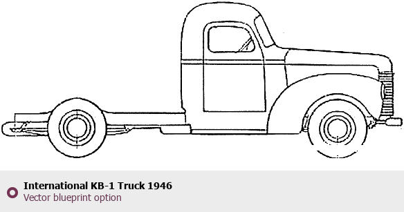 Raster blueprint of the 1946 International KB-1 Truck Heavy Truck. This free downloadable image can be used for graphic projects, digital design, and 3D modeling. The file provides accurate exterior proportions of the vehicle. Model year: 1946. Body type: Heavy Truck.
