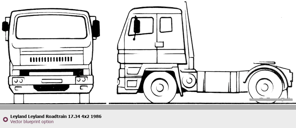 Raster blueprint of the 1986 Leyland Motors Roadtrain 17.34 4x2 Heavy Truck. This free downloadable image can be used for graphic projects, digital design, and 3D modeling. The file provides accurate exterior proportions of the vehicle. Model year: 1986. Body type: Heavy Truck.