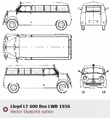 Raster blueprint of the 1956 Lloyd LT 600 Bus LWB Bus. This free downloadable image can be used for graphic projects, digital design, and 3D modeling. The file provides accurate exterior proportions of the vehicle. Model year: 1956. Body type: Bus.