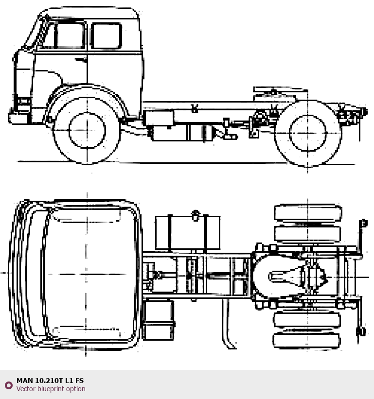 Raster blueprint of the MAN 10.210T L1 FS Heavy Truck. This free downloadable image can be used for graphic projects, digital design, and 3D modeling. The file provides accurate exterior proportions of the vehicle. Body type: Heavy Truck.
