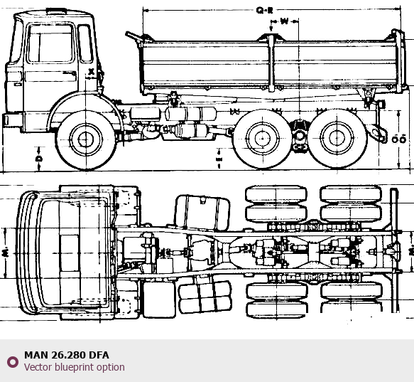 Raster blueprint of the MAN 26.280 DFA Heavy Truck. This free downloadable image can be used for graphic projects, digital design, and 3D modeling. The file provides accurate exterior proportions of the vehicle. Body type: Heavy Truck.