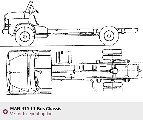 Raster blueprint of the MAN 415 L1 Bus Chassis Heavy Truck. This free downloadable image can be used for graphic projects, digital design, and 3D modeling. The file provides accurate exterior proportions of the vehicle. Body type: Heavy Truck.