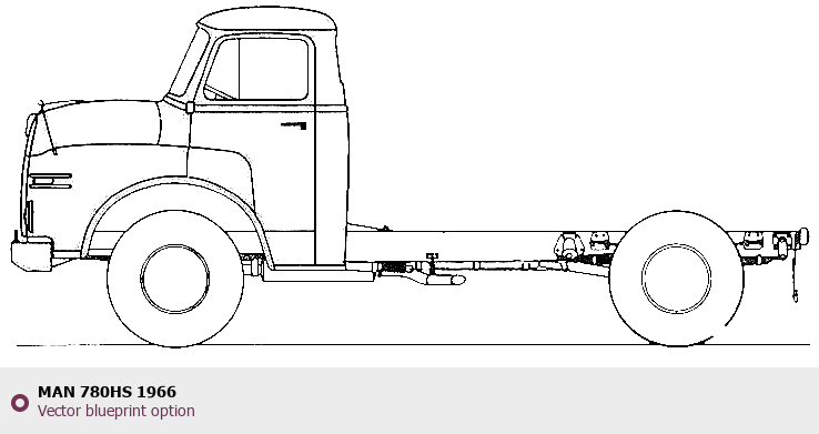 Raster blueprint of the MAN 780HS 1966 Heavy Truck. This free downloadable image can be used for graphic projects, digital design, and 3D modeling. The file provides accurate exterior proportions of the vehicle. Body type: Heavy Truck.