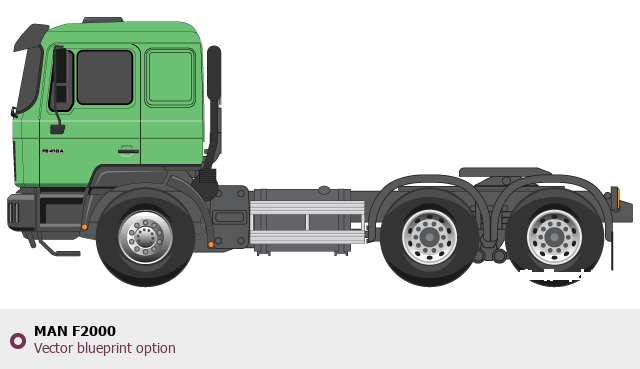 Raster blueprint of the MAN F2000 Heavy Truck. This free downloadable image can be used for graphic projects, digital design, and 3D modeling. The file provides accurate exterior proportions of the vehicle. Body type: Heavy Truck.