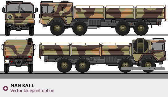 Raster blueprint of the MAN KAT1 Heavy Truck. This free downloadable image can be used for graphic projects, digital design, and 3D modeling. The file provides accurate exterior proportions of the vehicle. Body type: Heavy Truck.