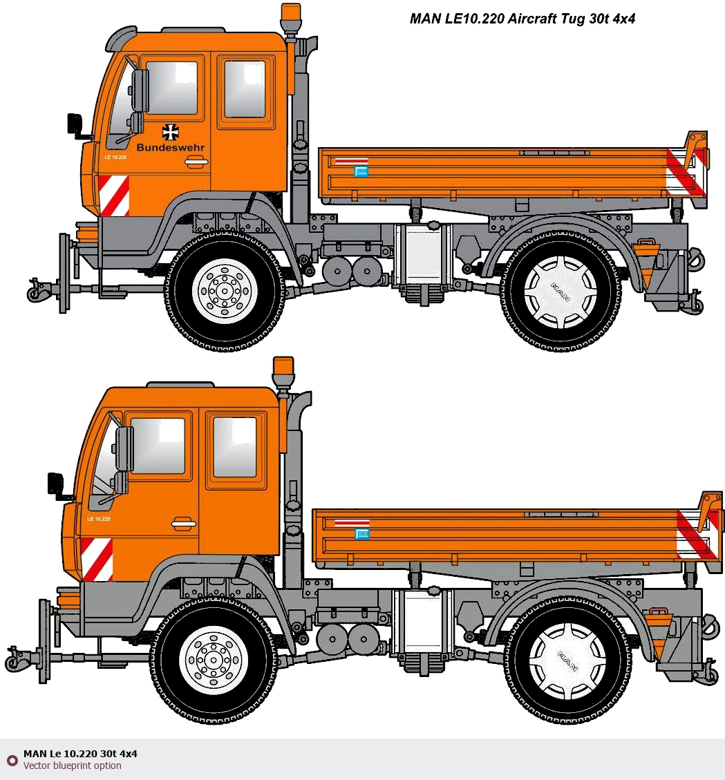 Raster blueprint of the MAN Le 10.220 30t 4x4 Heavy Truck. This free downloadable image can be used for graphic projects, digital design, and 3D modeling. The file provides accurate exterior proportions of the vehicle. Body type: Heavy Truck.