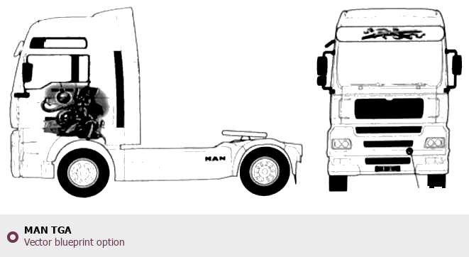 Raster blueprint of the MAN TGA Heavy Truck. This free downloadable image can be used for graphic projects, digital design, and 3D modeling. The file provides accurate exterior proportions of the vehicle. Body type: Heavy Truck.