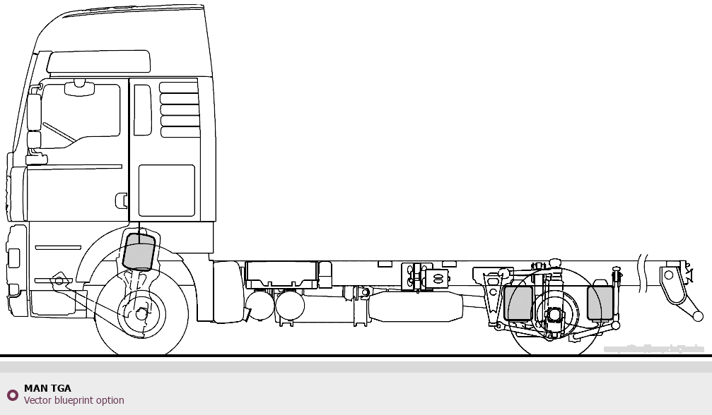 Raster blueprint of the MAN TGA Heavy Truck. This free downloadable image can be used for graphic projects, digital design, and 3D modeling. The file provides accurate exterior proportions of the vehicle. Body type: Heavy Truck.