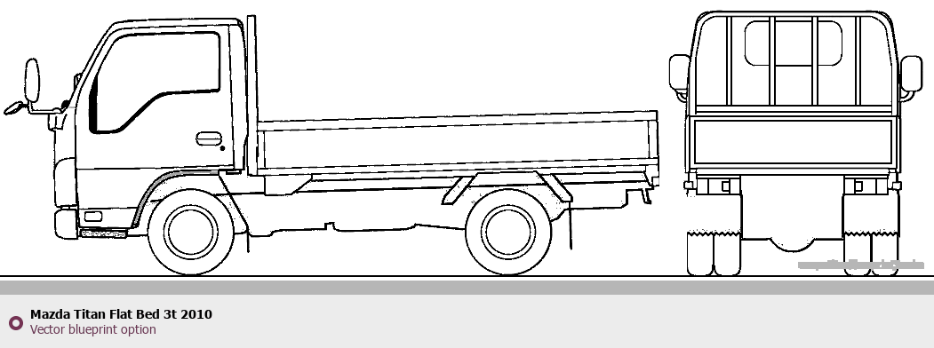 Raster blueprint of the 2010 Mazda Titan Flat Bed 3t Heavy Truck. This free downloadable image can be used for graphic projects, digital design, and 3D modeling. The file provides accurate exterior proportions of the vehicle. Model year: 2010. Body type: Heavy Truck.