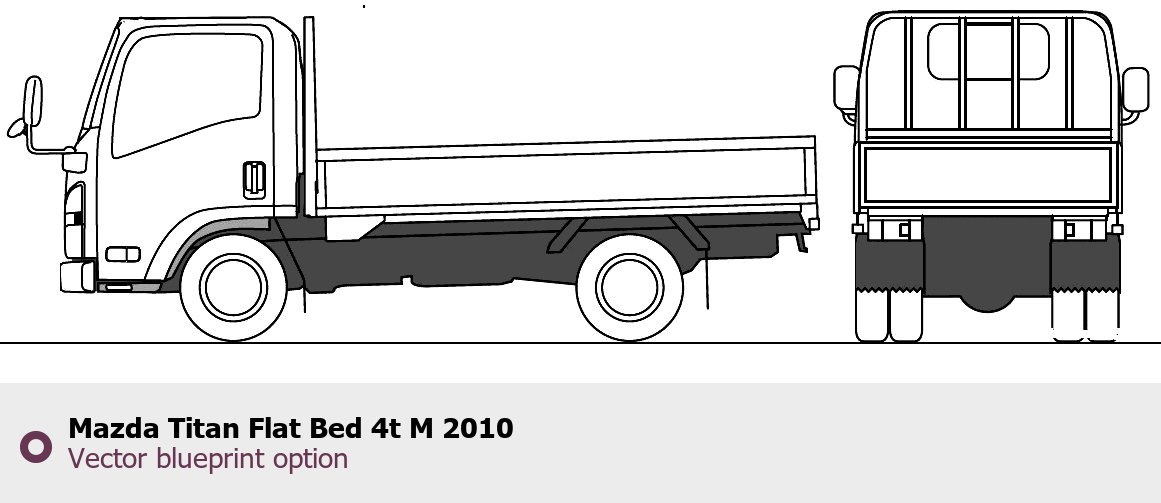 Raster blueprint of the 2010 Mazda Titan Flat Bed 4t M Heavy Truck. This free downloadable image can be used for graphic projects, digital design, and 3D modeling. The file provides accurate exterior proportions of the vehicle. Model year: 2010. Body type: Heavy Truck.