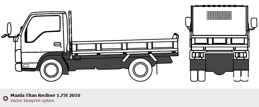 Raster blueprint of the 2010 Mazda Titan Recliner 1.75t Heavy Truck. This free downloadable image can be used for graphic projects, digital design, and 3D modeling. The file provides accurate exterior proportions of the vehicle. Model year: 2010. Body type: Heavy Truck.