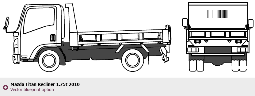 Raster blueprint of the 2010 Mazda Titan Recliner 1.75t Heavy Truck. This free downloadable image can be used for graphic projects, digital design, and 3D modeling. The file provides accurate exterior proportions of the vehicle. Model year: 2010. Body type: Heavy Truck.