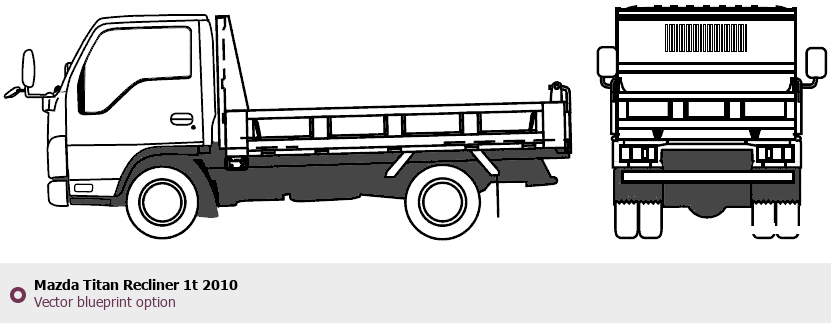 Raster blueprint of the 2010 Mazda Titan Recliner 1t Heavy Truck. This free downloadable image can be used for graphic projects, digital design, and 3D modeling. The file provides accurate exterior proportions of the vehicle. Model year: 2010. Body type: Heavy Truck.