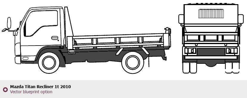 Raster blueprint of the 2010 Mazda Titan Recliner 1t Heavy Truck. This free downloadable image can be used for graphic projects, digital design, and 3D modeling. The file provides accurate exterior proportions of the vehicle. Model year: 2010. Body type: Heavy Truck.