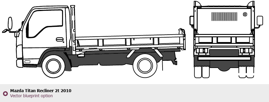 Raster blueprint of the 2010 Mazda Titan Recliner 2t Heavy Truck. This free downloadable image can be used for graphic projects, digital design, and 3D modeling. The file provides accurate exterior proportions of the vehicle. Model year: 2010. Body type: Heavy Truck.