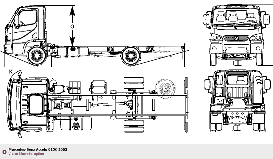 Raster blueprint of the 2003 Mercedes-Benz Accelo 915C Heavy Truck. This free downloadable image can be used for graphic projects, digital design, and 3D modeling. The file provides accurate exterior proportions of the vehicle. Model year: 2003. Body type: Heavy Truck.