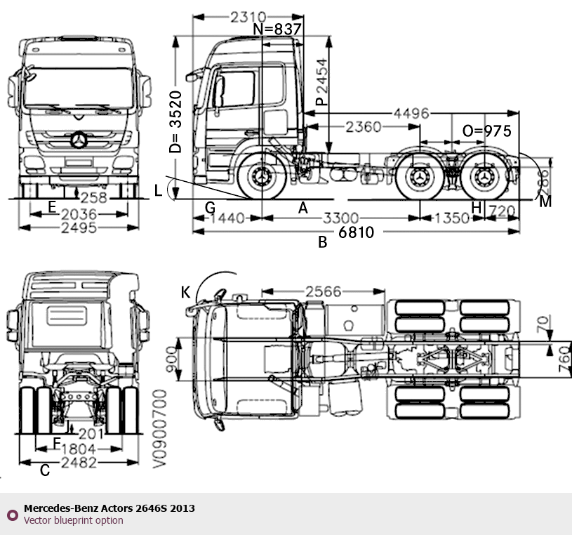 Raster blueprint of the 2013 Mercedes-Benz Actors 2646S Heavy Truck. This free downloadable image can be used for graphic projects, digital design, and 3D modeling. The file provides accurate exterior proportions of the vehicle. Model year: 2013. Body type: Heavy Truck.