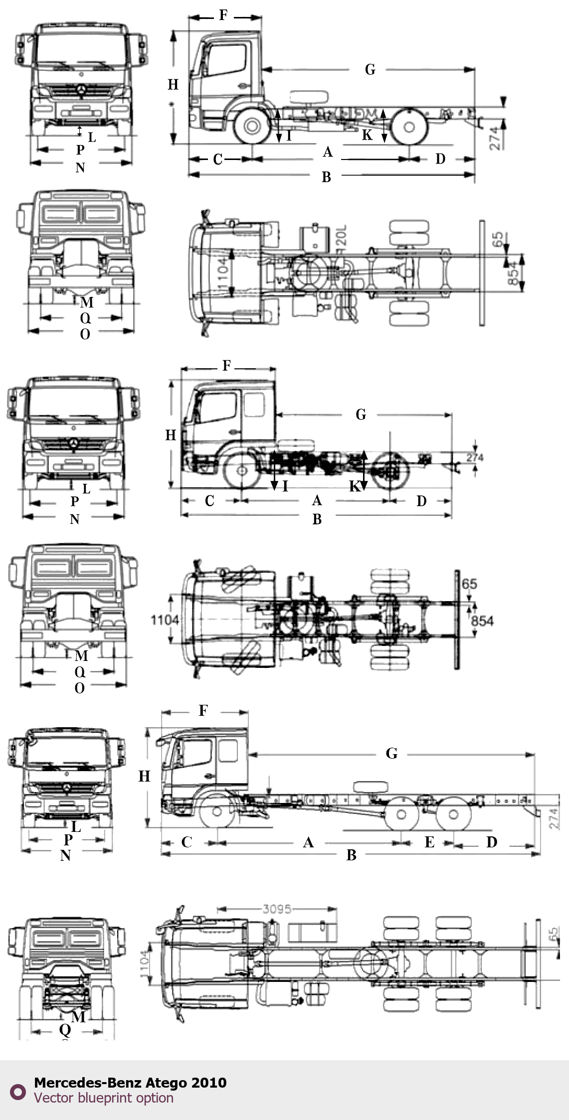 Raster blueprint of the 2010 Mercedes-Benz Atego Heavy Truck. This free downloadable image can be used for graphic projects, digital design, and 3D modeling. The file provides accurate exterior proportions of the vehicle. Model year: 2010. Body type: Heavy Truck.