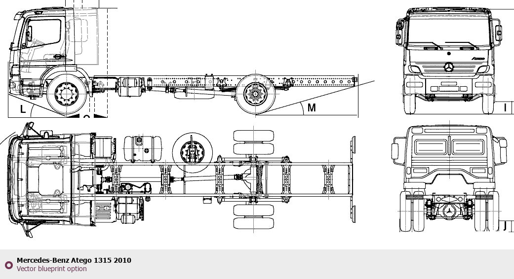 Raster blueprint of the 2010 Mercedes-Benz Atego 1315 Heavy Truck. This free downloadable image can be used for graphic projects, digital design, and 3D modeling. The file provides accurate exterior proportions of the vehicle. Model year: 2010. Body type: Heavy Truck.