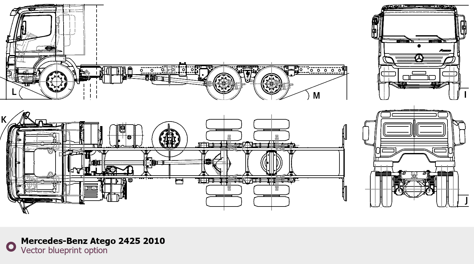 Raster blueprint of the 2010 Mercedes-Benz Atego 2425 Heavy Truck. This free downloadable image can be used for graphic projects, digital design, and 3D modeling. The file provides accurate exterior proportions of the vehicle. Model year: 2010. Body type: Heavy Truck.