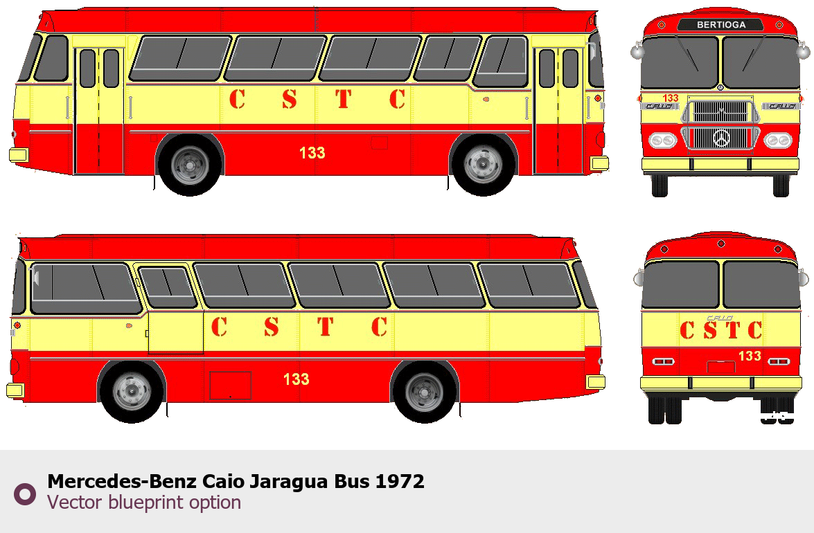Raster blueprint of the 1972 Mercedes-Benz Caio Jaragua Bus Bus. This free downloadable image can be used for graphic projects, digital design, and 3D modeling. The file provides accurate exterior proportions of the vehicle. Model year: 1972. Body type: Bus.