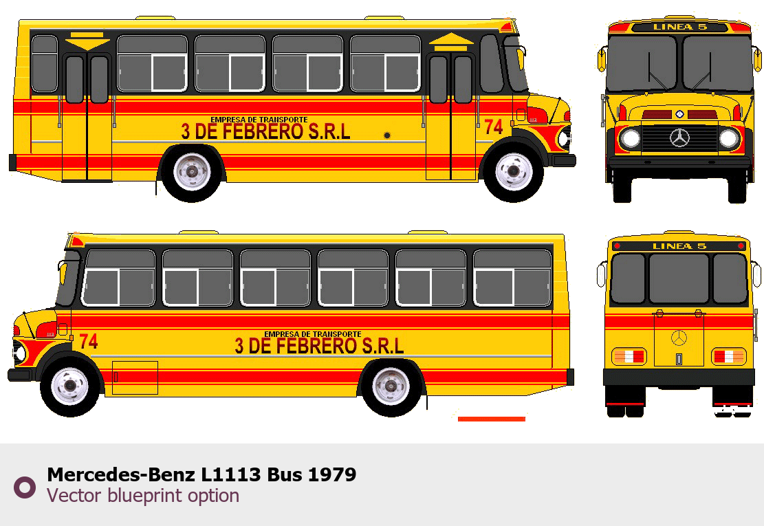 Raster blueprint of the 1979 Mercedes-Benz L1113 Bus Bus. This free downloadable image can be used for graphic projects, digital design, and 3D modeling. The file provides accurate exterior proportions of the vehicle. Model year: 1979. Body type: Bus.
