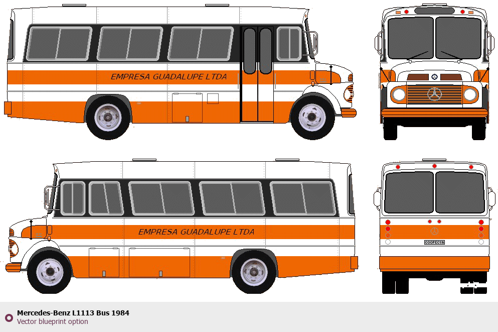 Raster blueprint of the 1984 Mercedes-Benz L1113 Bus Bus. This free downloadable image can be used for graphic projects, digital design, and 3D modeling. The file provides accurate exterior proportions of the vehicle. Model year: 1984. Body type: Bus.