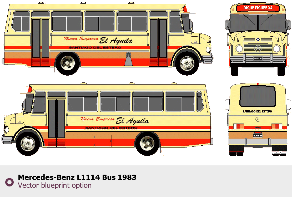Raster blueprint of the 1983 Mercedes-Benz L1114 Bus Bus. This free downloadable image can be used for graphic projects, digital design, and 3D modeling. The file provides accurate exterior proportions of the vehicle. Model year: 1983. Body type: Bus.