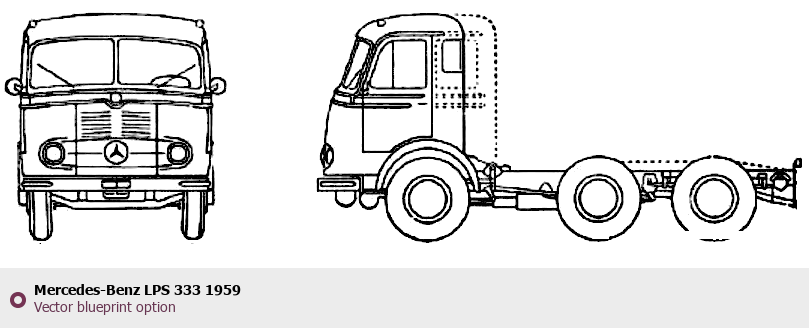 Raster blueprint of the 1959 Mercedes-Benz LPS 333 Heavy Truck. This free downloadable image can be used for graphic projects, digital design, and 3D modeling. The file provides accurate exterior proportions of the vehicle. Model year: 1959. Body type: Heavy Truck.