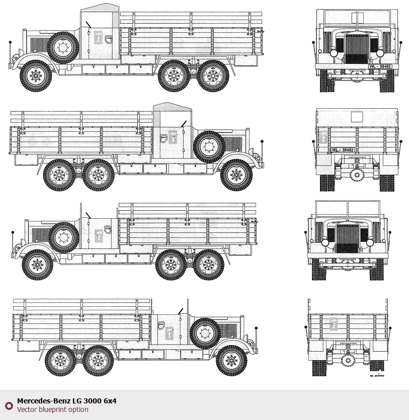 Raster blueprint of the Mercedes-Benz LG 3000 6x4 Heavy Truck. This free downloadable image can be used for graphic projects, digital design, and 3D modeling. The file provides accurate exterior proportions of the vehicle. Body type: Heavy Truck.