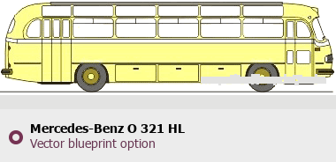 Raster blueprint of the Mercedes-Benz O 321 HL Bus. This free downloadable image can be used for graphic projects, digital design, and 3D modeling. The file provides accurate exterior proportions of the vehicle. Body type: Bus.