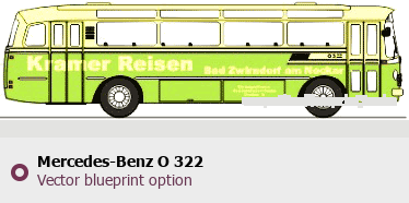 Raster blueprint of the Mercedes-Benz O 322 Bus. This free downloadable image can be used for graphic projects, digital design, and 3D modeling. The file provides accurate exterior proportions of the vehicle. Body type: Bus.