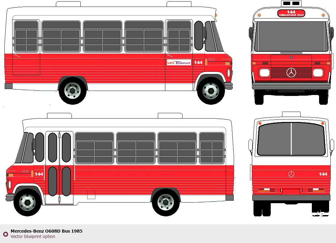 Raster blueprint of the 1985 Mercedes-Benz O608D Bus Bus. This free downloadable image can be used for graphic projects, digital design, and 3D modeling. The file provides accurate exterior proportions of the vehicle. Model year: 1985. Body type: Bus.
