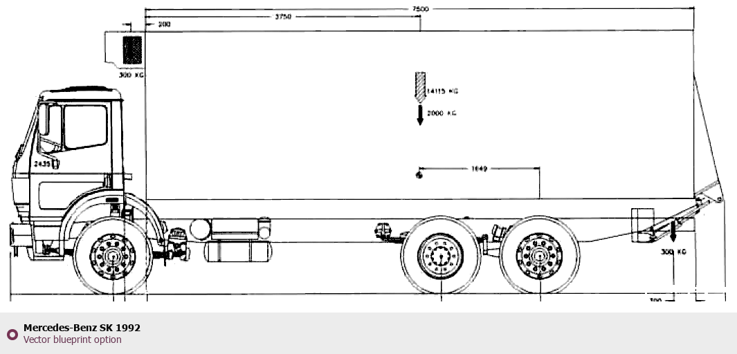 Raster blueprint of the 1992 Mercedes-Benz SK Heavy Truck. This free downloadable image can be used for graphic projects, digital design, and 3D modeling. The file provides accurate exterior proportions of the vehicle. Model year: 1992. Body type: Heavy Truck.