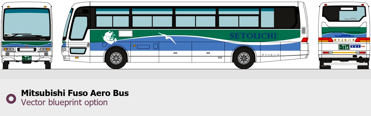 Raster blueprint of the Mitsubishi Fuso Aero Bus Bus. This free downloadable image can be used for graphic projects, digital design, and 3D modeling. The file provides accurate exterior proportions of the vehicle. Body type: Bus.