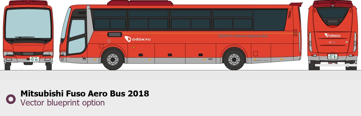 Raster blueprint of the 2018 Mitsubishi Fuso Aero Bus Bus. This free downloadable image can be used for graphic projects, digital design, and 3D modeling. The file provides accurate exterior proportions of the vehicle. Model year: 2018. Body type: Bus.