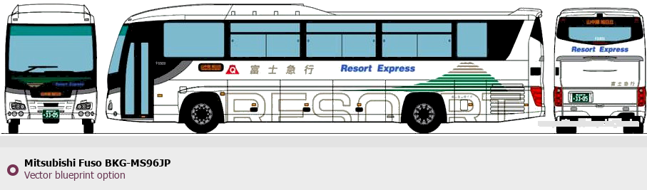 Raster blueprint of the Mitsubishi Fuso BKG-MS96JP Bus. This free downloadable image can be used for graphic projects, digital design, and 3D modeling. The file provides accurate exterior proportions of the vehicle. Body type: Bus.