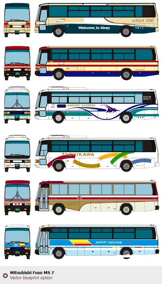 Raster blueprint of the Mitsubishi Fuso MS 7 Bus. This free downloadable image can be used for graphic projects, digital design, and 3D modeling. The file provides accurate exterior proportions of the vehicle. Body type: Bus.