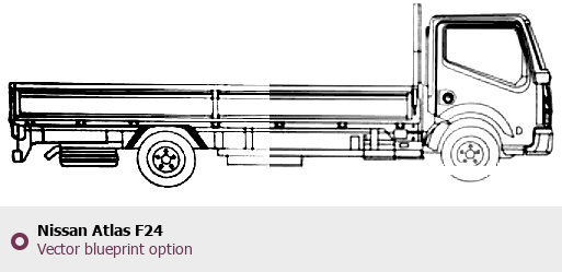 Raster blueprint of the Nissan Atlas F24 Heavy Truck. This free downloadable image can be used for graphic projects, digital design, and 3D modeling. The file provides accurate exterior proportions of the vehicle. Body type: Heavy Truck.