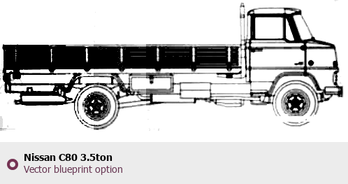 Raster blueprint of the Nissan C80 3.5ton Heavy Truck. This free downloadable image can be used for graphic projects, digital design, and 3D modeling. The file provides accurate exterior proportions of the vehicle. Body type: Heavy Truck.