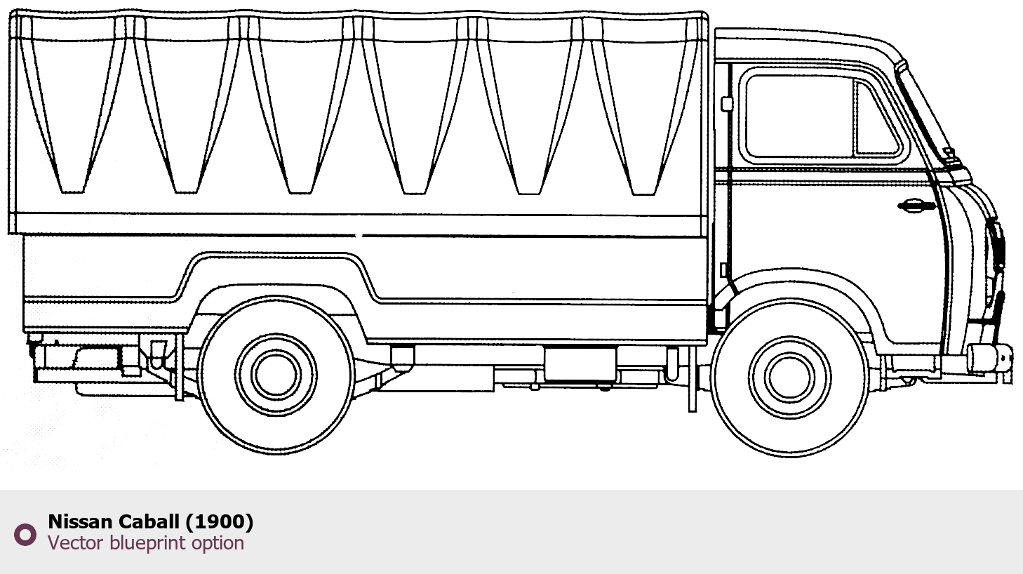 Raster blueprint of the Nissan Caball (1900) Heavy Truck. This free downloadable image can be used for graphic projects, digital design, and 3D modeling. The file provides accurate exterior proportions of the vehicle. Body type: Heavy Truck.