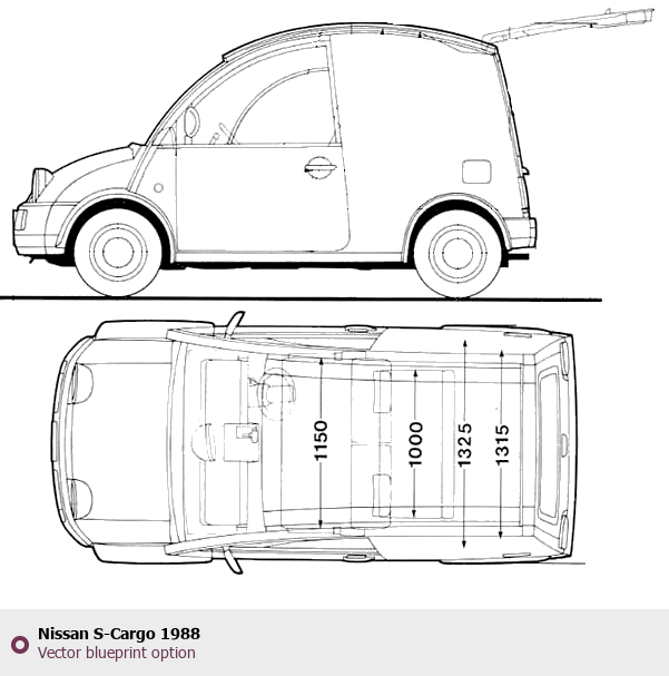 Raster blueprint of the 1988 Nissan S-Cargo Tag. This free downloadable image can be used for graphic projects, digital design, and 3D modeling. The file provides accurate exterior proportions of the vehicle. Model year: 1988. Body type: Tag.